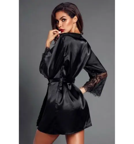 Style:Sexy Lace Silk Stain Kimono Bath Robe Lingerie